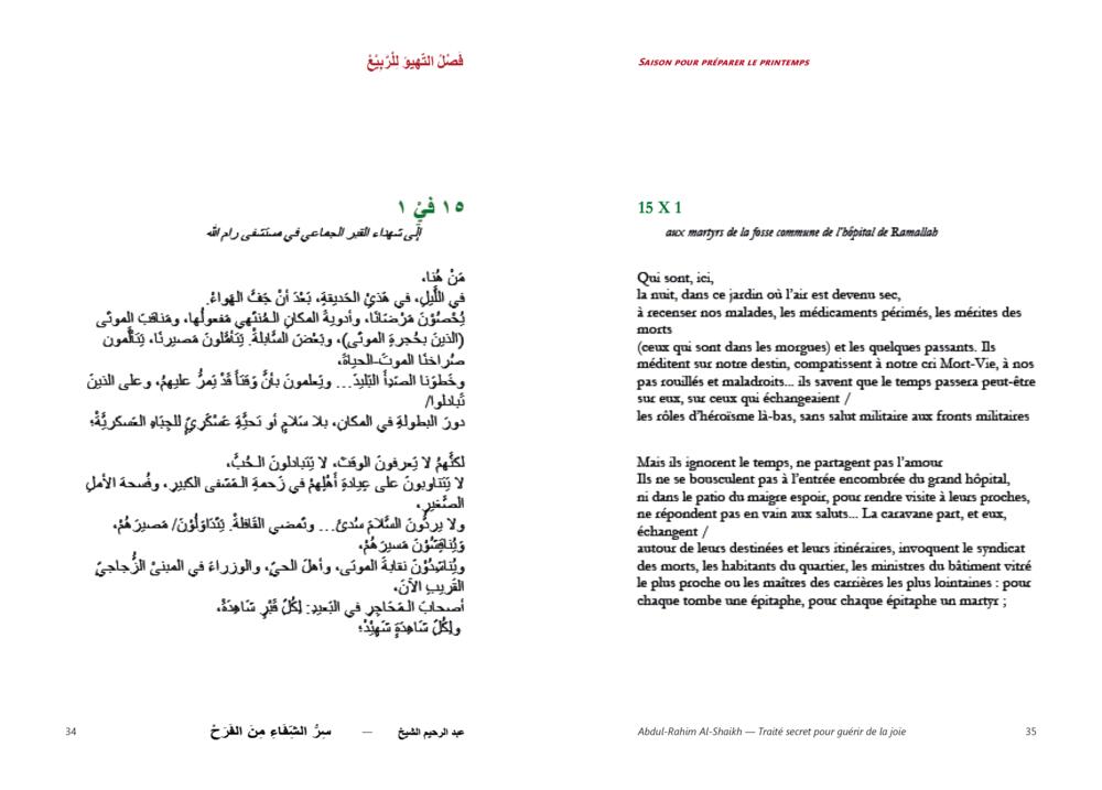 En savoir+Poèmes désamorcés de la souffranceLe philosophe cisjordanien Abdul-Rahim Al-Shaikh dévide l’insondable de saisons dont la maladie ressemble à l’absence de présent