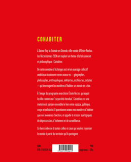 Résultat de ces cinq journées d’échanges intenses, l’ouvrage Cohabiter (212 pages) réunit les contributions d’une trentaine d’auteur·es venu·es de divers horizons disciplinaires et militants : philosophes, géographes, anthropologues, sociologues, urbanistes, écrivain·es, avocat·es, activistes de terrain, architectes, psychiatres, artistes... Tous et toutes se sont réuni·es pour réfléchir à ce que signifie vivre ensemble sur une planète commune.