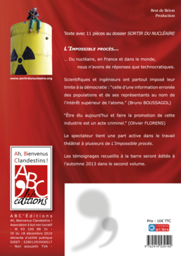 Volume 1, La pièce, paru en juillet 2013 pour le festival off d’Avignon, contient le texte de la pièce avec préface du metteur en scène, postface d’un élu du Vaucluse, et 11 pièces au dossier “Sortir du nucléaire”